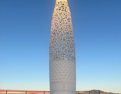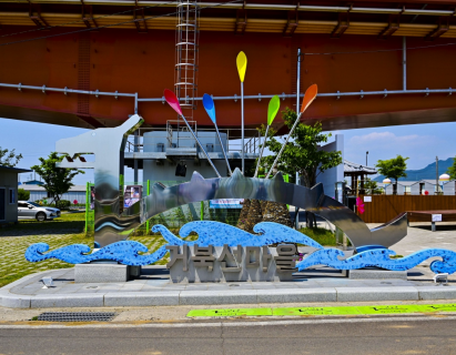 한글의 자음과 모음을 그물로 형상화하여 주민들간의 화합과 이상을 담은 로켓이 바다를 품고서 미래로 나아감을 표현한 상징 조형물입니다.